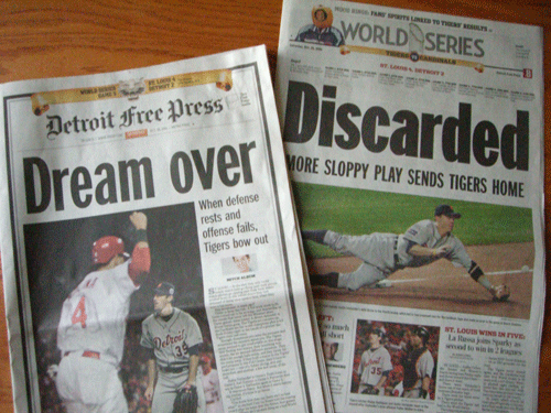 デトロイトタイガースがWS負けてしまった次の日の新聞。